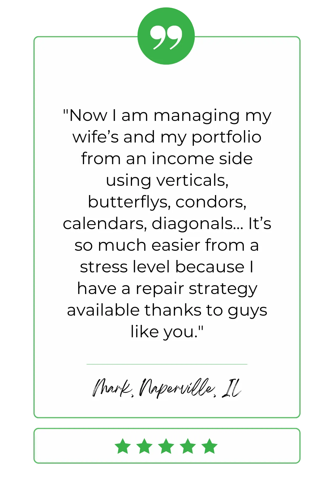 I used to like naked puts before I started with MTM. I had two trades on that had I not attended your classes, I would have lost over $20,000 in total on Monday alone. Instead I lost $600. I told my wife that this day was worth the entire investment.